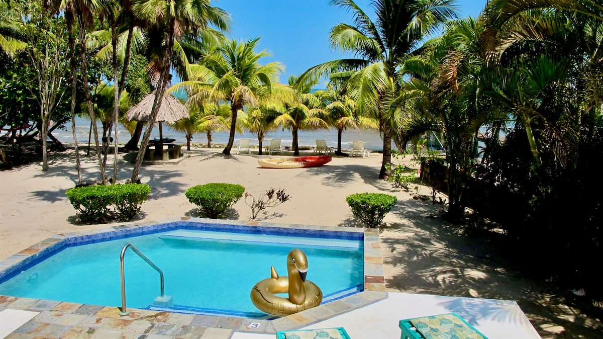 LOCATION, LOCATION, LOCATION!!! Enjoy Beach, Pool & Sun! The Sunny Bungalow is located at mile 17.5 of the Placencia Peninsula in the Community of Surfside. A bright, modern and clean home awaits you! Enjoy stunning sunrises from the beach, swimming in the pool or ocean, kayaking in the ocean or simply relaxing under the palms.
