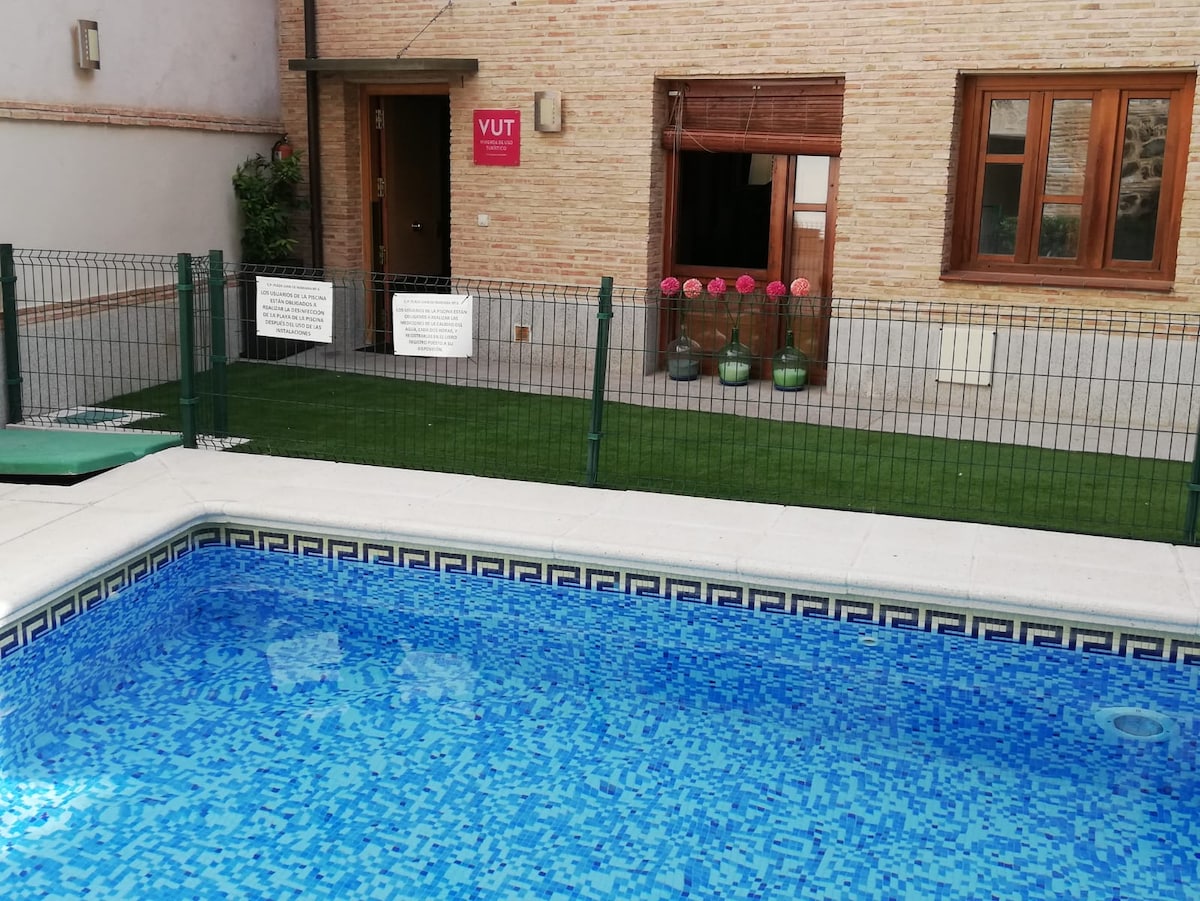 Disfruta de la sencillez de este moderno alojamiento, bonito, acogedor y tranquilo en el centro histórico de Toledo en una típica casa toledana, muy próxima a todos los puntos de interés. Totalmente equipado y renovado para el confort de los huéspedes tanto en invierno como en verano. La casa se encuentra dentro de una urbanización, junto a un patio ajardinado con piscina, algo muy exclusivo en el interior del casco histórico de Toledo. Podréis hacer uso de la piscina en temporada de verano.