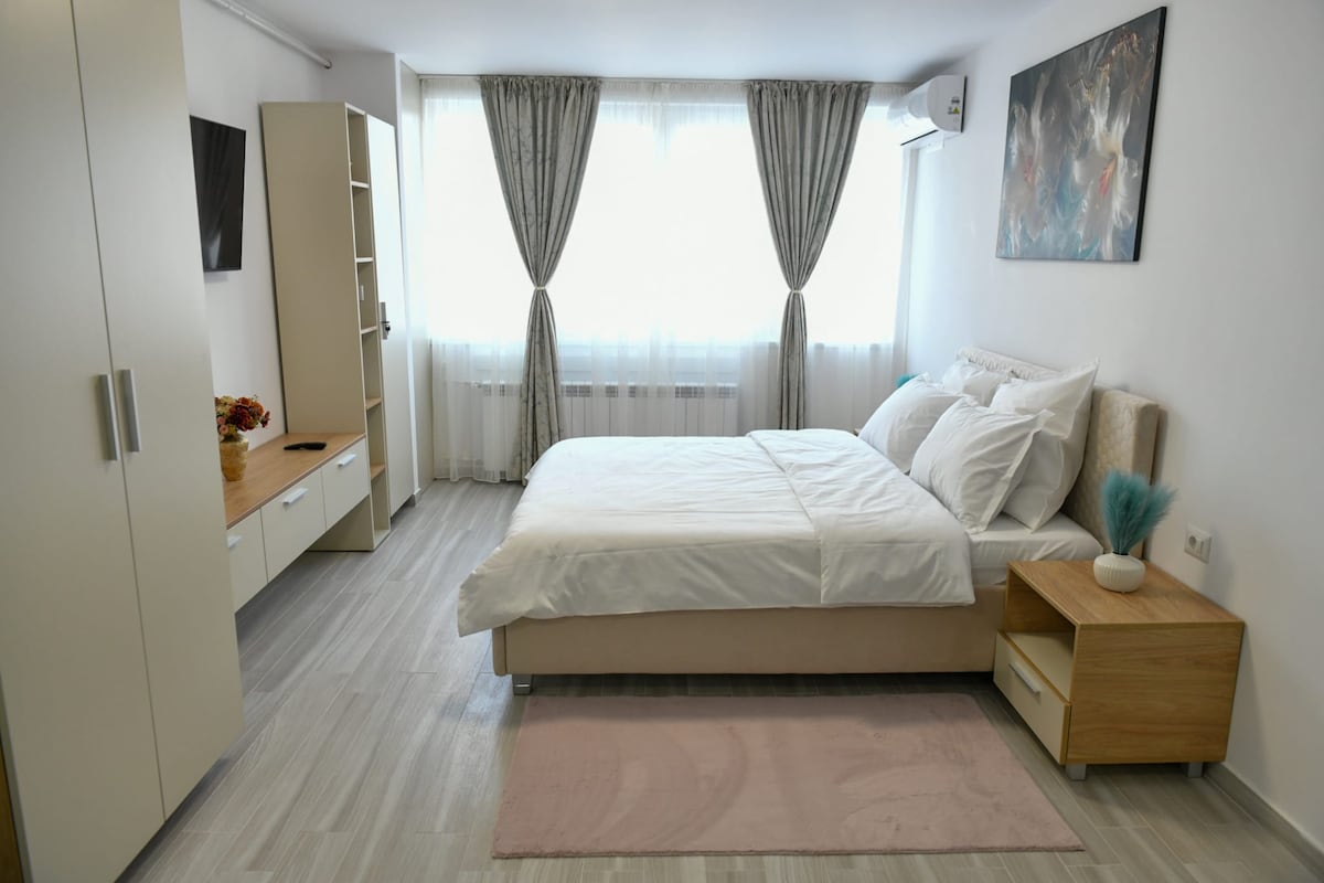 Desfrute de uma experiência elegante neste lugar bem-localizado. Este moderno apartamento de 1 quarto, com cozinha totalmente equipada, sala de estar espaçosa com um sofá extensível fica a apenas 3 minutos a pé do centro da cidade e a 2 km da Cidadela de Neamt.