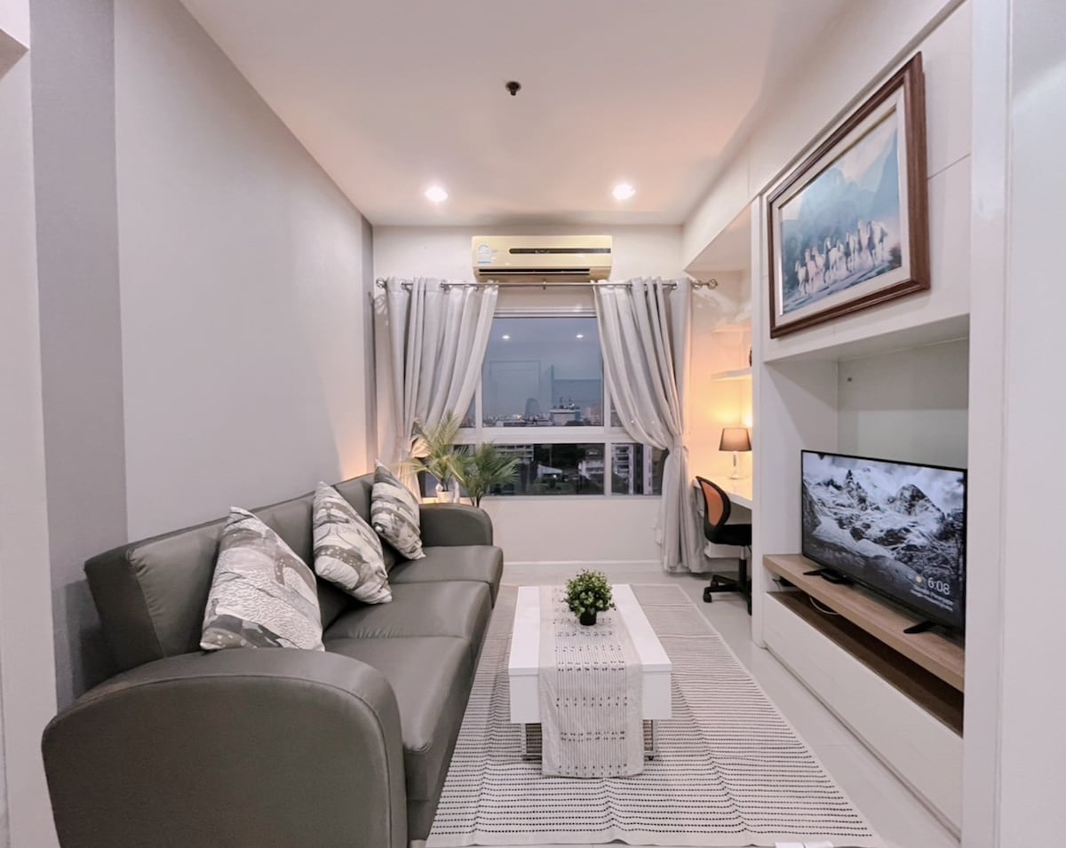 quarto acolhedor de uma cama com varanda perto de skytrain ,Wi-Fi