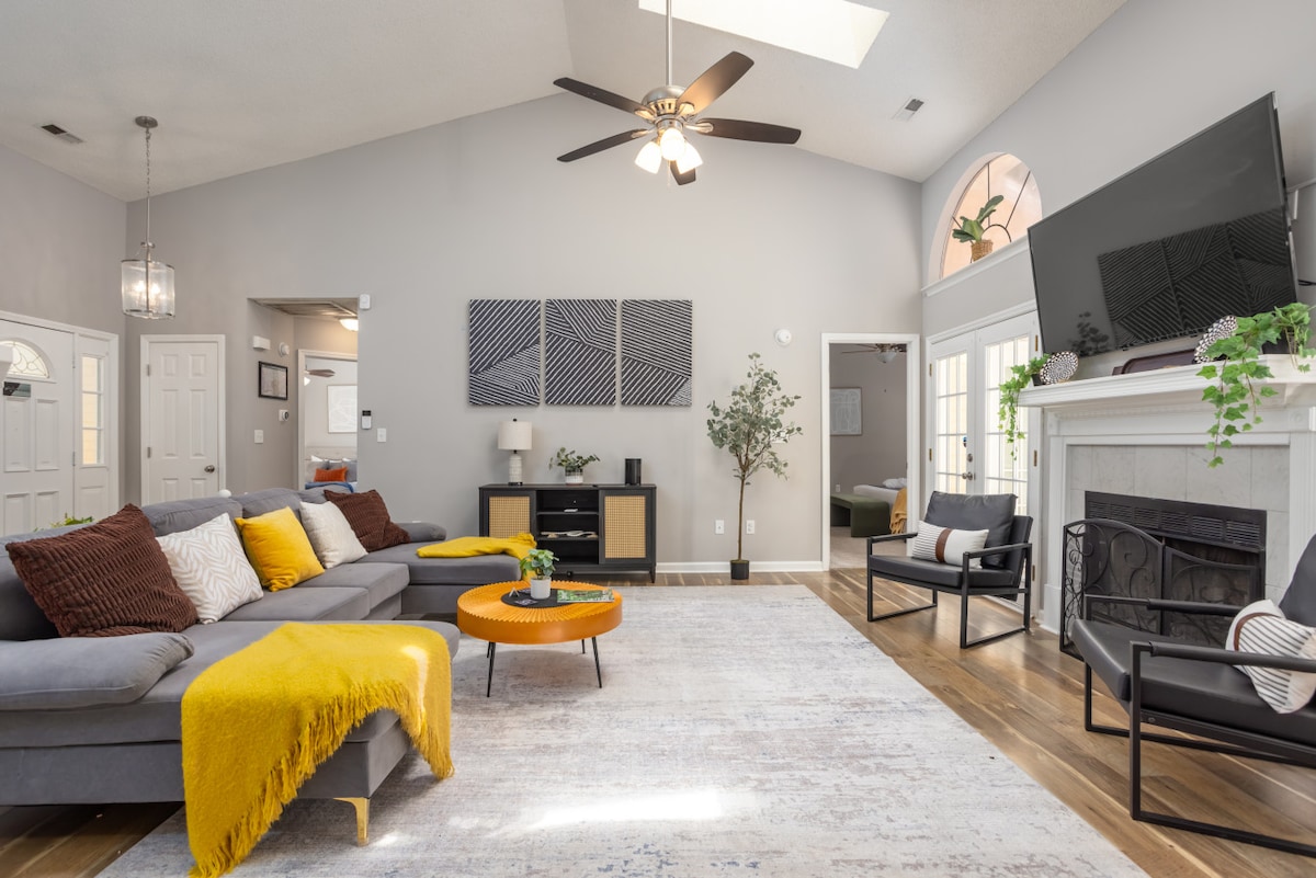 Esta espaçosa casa de quatro quartos e duas casas de banho oferece uma escapadela serena com um grande quintal cercado e muito espaço para relaxar. Cada um dos quatro quartos foi cuidadosamente concebido para o conforto, garantindo uma noite de sono tranquila. O quarto principal possui uma cama king size macia e uma casa de banho privativa, enquanto os restantes quartos oferecem camas queen e twin, acomodando até 7 hóspedes confortavelmente.