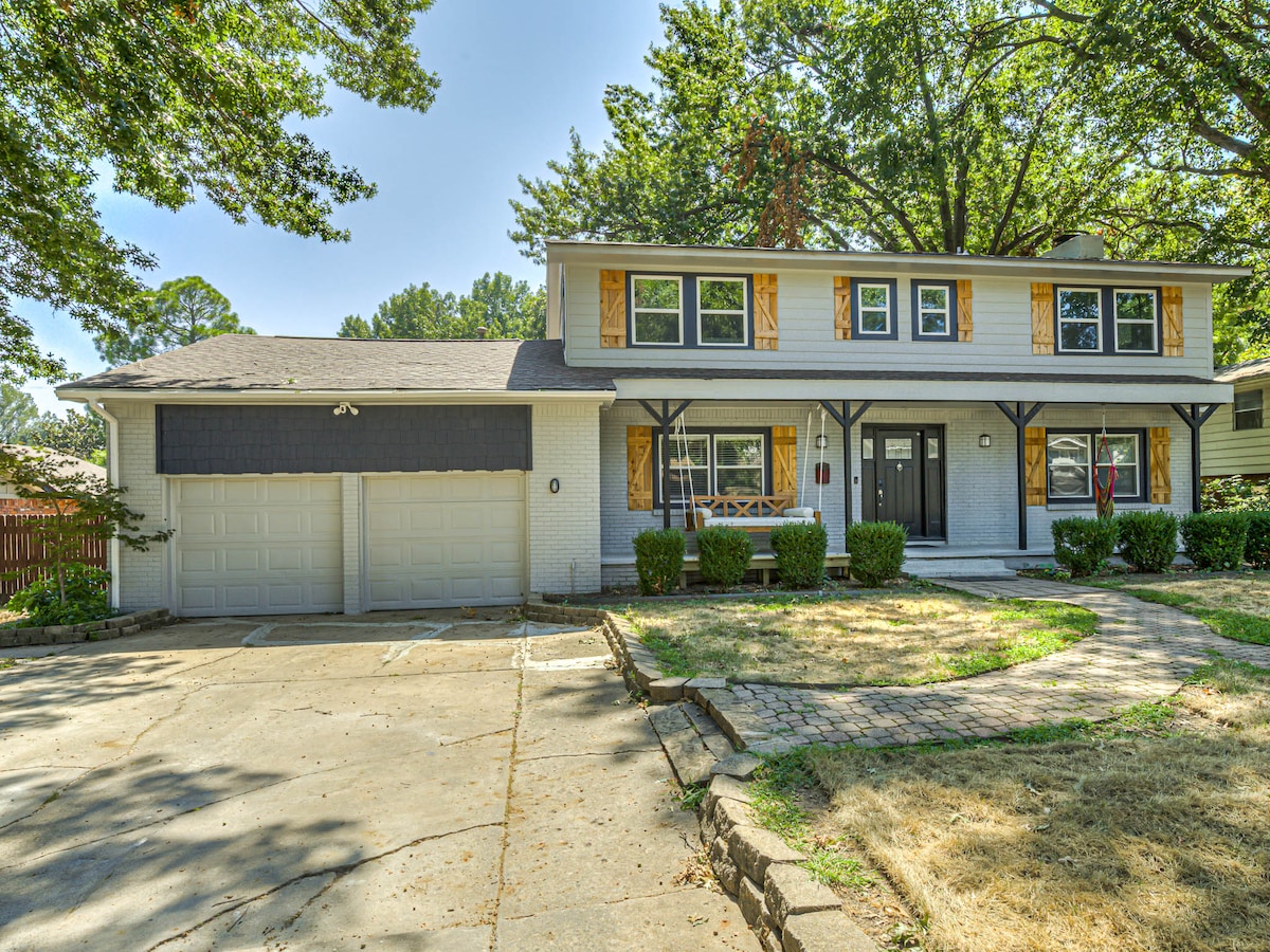 Bem-vindo (a) à nossa casa de família! Mergulhe no relaxamento com a nossa grande piscina aquecida e descontraia na sauna interior. Divirta-se com o matraquilhos e o skeeball ou prepare uma refeição na nossa grelha Blackstone ou na grelha a gás. Os amantes do café apreciarão a nossa máquina de café espresso, prensa francesa, Keurig e moedor. Saboreie refeições no pátio, relaxe à beira da piscina ou balance no alpendre da frente. Estamos a poucos minutos do The Gathering Place, do centro da cidade, do St. Francis Hospital, de Gilcrease e muito mais. A sua escapadela perfeita está à sua espera!