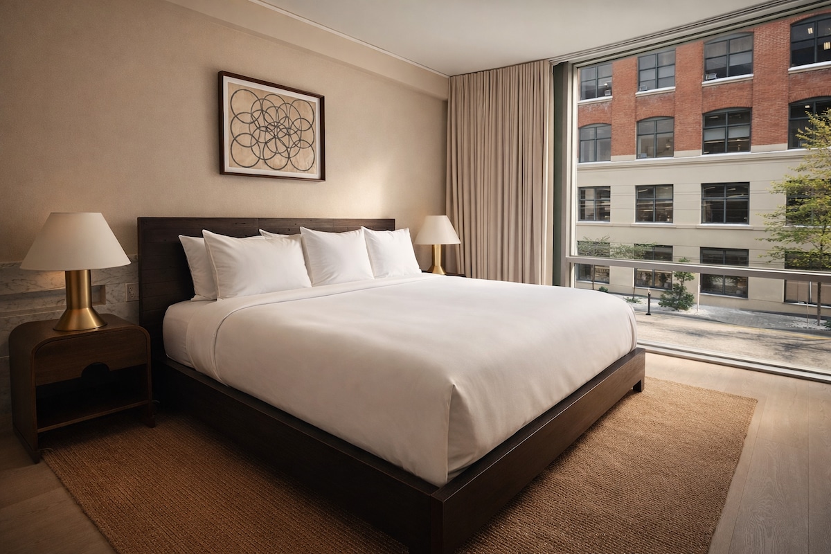 Experience modern city living at Casa Hotels in vibrant Leslieville. This industrial-chic, three-bedroom suite is located on the second floor (accessible via 16 steps) featuring spacious bedrooms, a fully equipped kitchen, in-suite laundry, and high-speed Wi-Fi. The living room includes a comfy sofa bed, accommodating up to 7 guests. Steps from trendy cafés, boutique shops, and local attractions, it’s the perfect base for exploring the city in comfort and style.