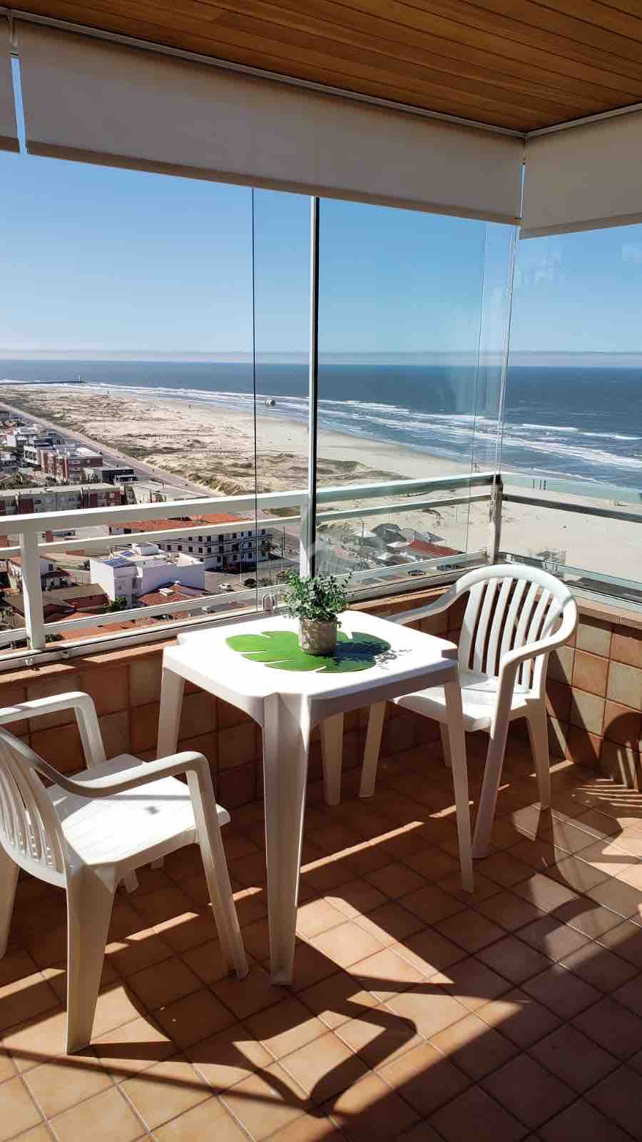 PRAIA GRANDE. Flat em andar alto, frente para o mar, em Torres, RS. Com vaga para carro. Camareira, piscina, academia, garagem, churrasqueira, cozinha equipada. Apartamento para não fumantes. Não aceita animais de estimação. Cama box queen e sofá-cama. Wi-fi com repetidor que NÃO deve ser desconectado da tomada. Temos travesseiros, mas não fornecemos roupas de cama, mesa e banho. UM split 18 000 BTUs. A mesa de jantar tem TAMPO DE VIDRO!