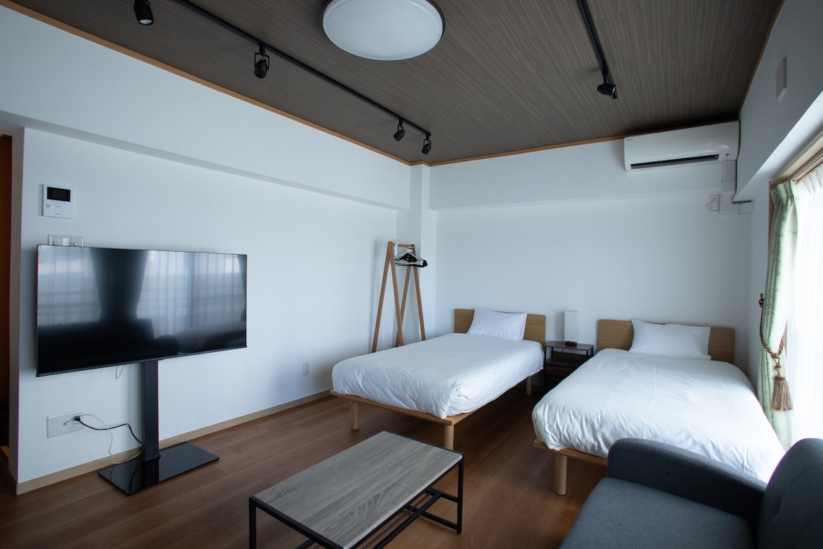 Esta propriedade luminosa está localizada no distrito norte de Tóquio e é ideal para famílias e pequenos grupos. A nossa propriedade tem dois quartos, um com duas camas de casal e o outro com uma cama de casal, acomodando um total de 6 hóspedes. A sala de estar apresenta um sofá e uma mesa de jantar, tornando-a um espaço ideal para desfrutar da vista, relaxar e jantar. A cozinha está totalmente equipada para cozinhar refeições deliciosas A propriedade inclui uma sanita e uma casa de banho separadas para sua comodidade.