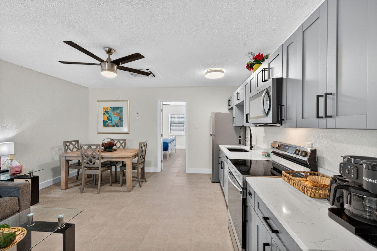 Bem-vindo ao The Pearl Suite, um condomínio vibrante e de design de estilo penthouse. - 1 quarto/1 casa de banho com uma cama queen confortável e sofá-cama. - Cozinha moderna com eletrodomésticos de aço inoxidável - Varanda privada com vista desobstruída para Tampa Bay. - Piscina aquecida durante todo o ano (tenha em conta que o resort é próprio para famílias, por isso provavelmente haverá crianças) - Ginásio ao ar livre e cais de pesca panorâmico. - Wi-Fi e estacionamento gratuitos