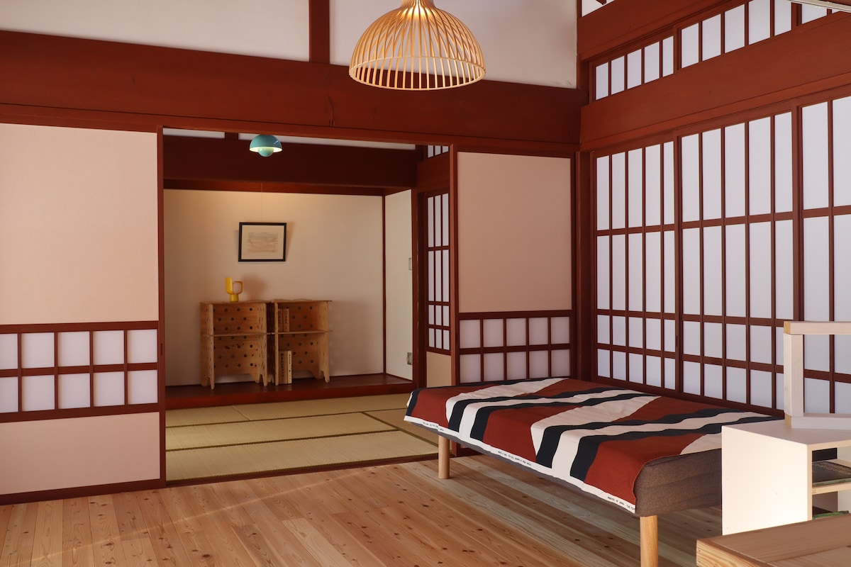 Mistura de 4 quartos privados de estilo tradicional e moderno com ar condicionado Dois chuveiros, duas casas de banho, jardim interior, grande pátio, sala de jantar, salas comuns. Damos-lhe as boas-vindas de uma forma amigável para fazer parte do nosso negócio familiar. Iwase é uma antiga cidade portuária com edifícios arquitetónicos únicos com 10 quilómetros de praia e 3.000 metros de montanha como pano de fundo.