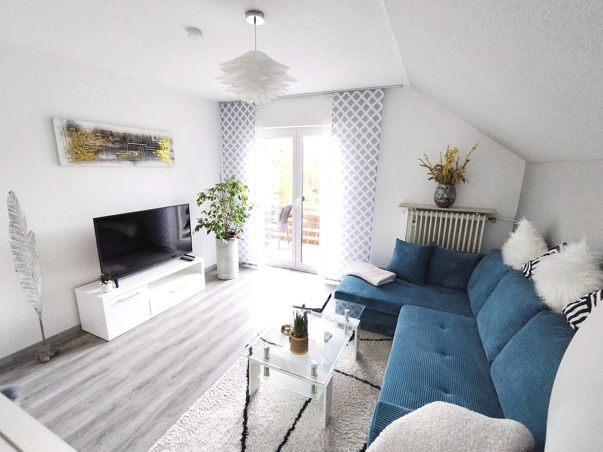 Sala de estar com vista de 180 graus para o Mosela! Casa unifamiliar com aprox. 80 m² de área de estar num piso, ótimos lugares para sentar ao ar livre e jardim! Uma grande sala de estar e jantar com muito espaço para janelas e acesso aos assentos ao ar livre, cozinha com máquina de lavar e secar roupa e muitos detalhes, casa de banho com chuveiro walk-in, dois quartos com camas de casal e um charme especial através do mobiliário no estilo shabby-chic combinado com elementos de Art Nouveau e casa de campo permitem-lhe desfrutar de um ambiente extraordinário aqui!