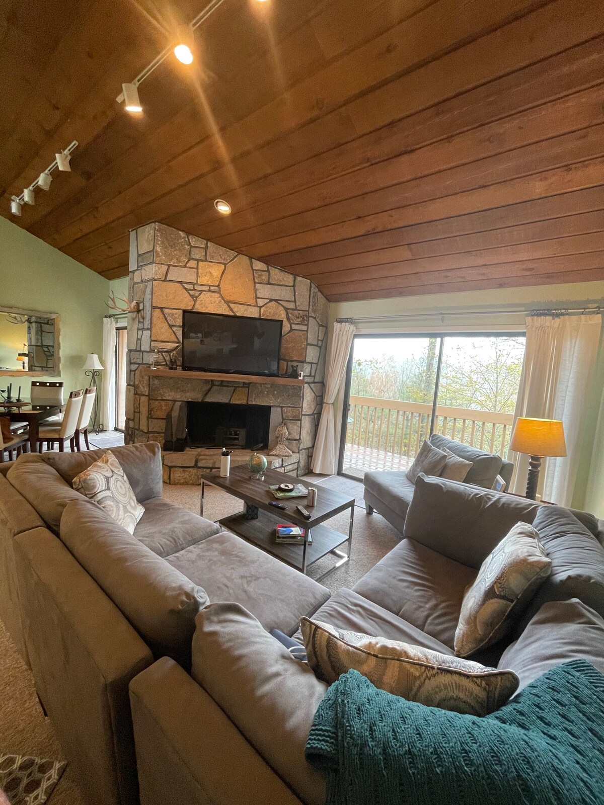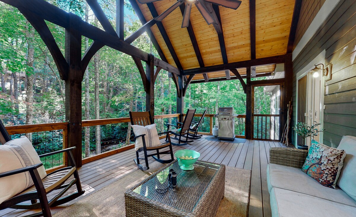 Os sons suaves da água clara do riacho envolvem toda a propriedade e convidam você a relaxar e brincar em um cenário de montanha à beira-mar verdadeiramente único. Projetada para 4 estações de atividades internas e externas, esta casa É o destino... Comodidades internas em abundância como um fliperama real (com fone de ouvido VR), pingue-pongue e duas TVs de 65” tornam o tempo chuvoso um prazer, ALÉM DE todas as comodidades de natação, caminhadas, golfe e Sapphire Valley Resort estão à sua disposição para desfrutar. Bem-vindo ao luxo exclusivo da montanha!