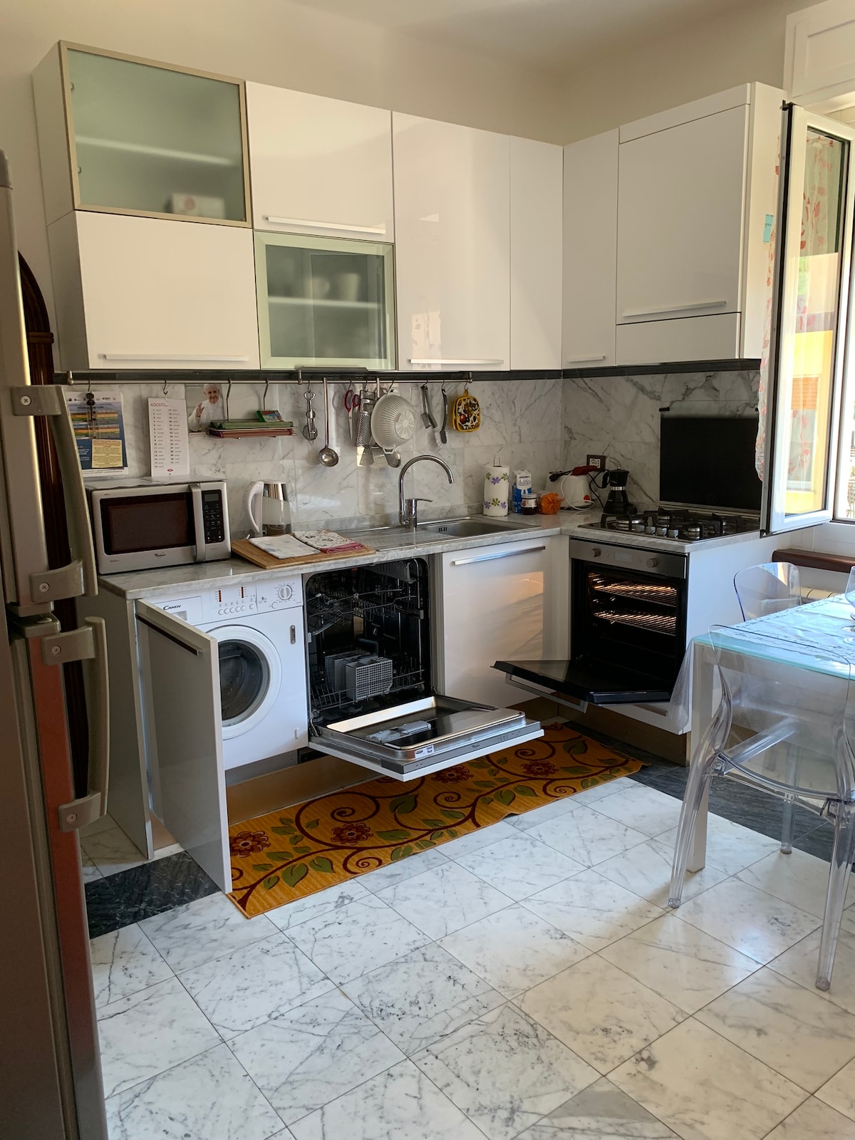 O apartamento fica no quarto andar, há um elevador. O quarto grande e iluminado é fornecido com uma longa varanda e uma janela (sem vista para o mar). Equipado com tudo (como em casa): toalhas, secador de cabelo, lençóis, travesseiros, torradeira, chaleira para chá, micro-ondas, forno, moka, máquinas de lavar louça e assim por diante. Wi-fi. TV. Estacionamento gratuito sob a casa (largura máxima 2100mm, sem Suv grande) Garagem apenas para motocicleta.