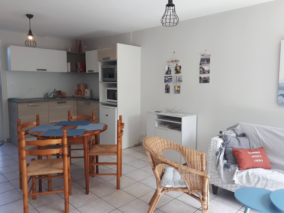 Relaxe neste alojamento único e tranquilo com varanda/terraço localizado no primeiro andar de uma casa individual e totalmente independente. Perto da praia de Les Blancs Sablons. Dispõe de uma cozinha equipada e com uma área de estar, uma suíte principal. Uma vaga de estacionamento está disponível em frente ao apartamento. Não aceitamos cheques de férias.