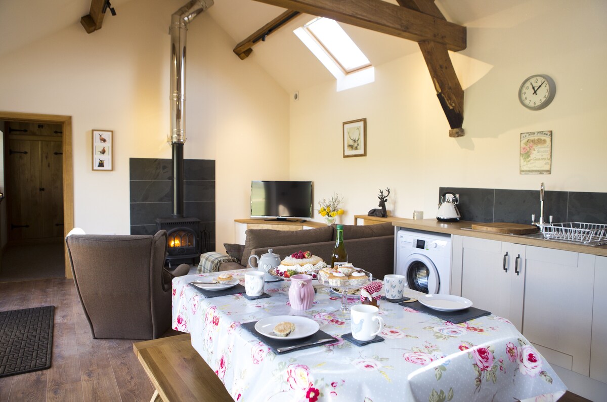 {Banheira de hidromassagem está disponível a um custo extra. Por favor, envie uma mensagem para verificar a disponibilidade.} Retiro rural exclusivo. Área de estar em plano aberto, queimador de lenha, aquecimento sob o piso, vigas de carvalho, móveis de qualidade, cozinha rural totalmente equipada, portas duplas para pátio/jardim privativo. Wi-Fi de fibra super rápido. Situado na beira do AONB em local tranquilo e privado. Vistas para o campo. Base perfeita para entusiastas do ar livre. Se a data desejada não estiver disponível, confira o Old Dairy e o Bentra Annex.