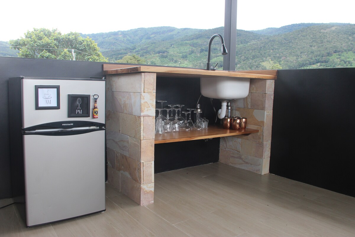 Entre no mágico Unicorn Geodome, uma maravilha arquitetônica requintada em San Gerardo De Dota. Com um grande deck de 1000 pés quadrados que se estende sobre o renomado rio Sevegre, os hóspedes podem desfrutar de luxo. Relaxe na rede flutuante ou na banheira de hidromassagem com os sons suaves do rio ao fundo. Sua estadia neste Geodome certamente será uma experiência inesquecível cheia de amor e tranquilidade.