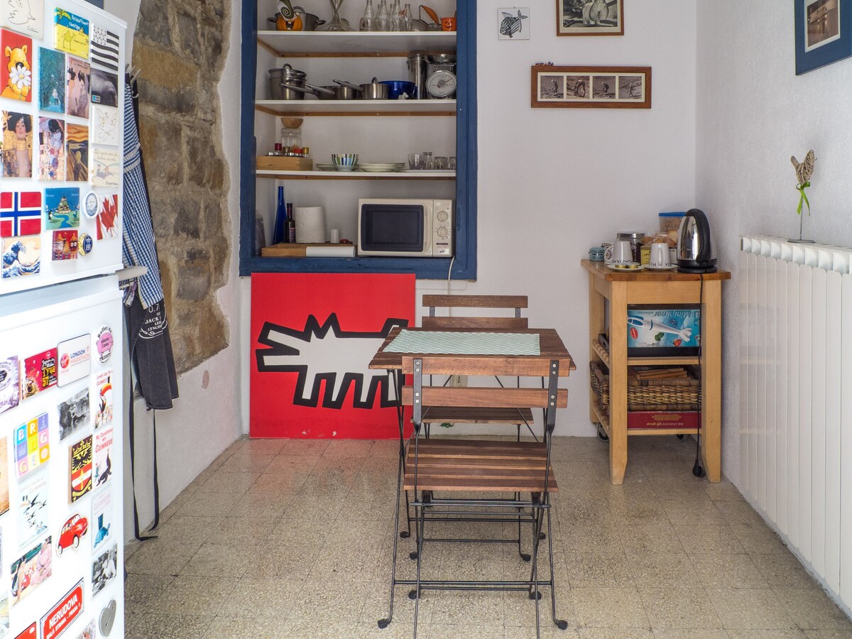 Apartamento de 65 metros quadrados e terraço de 35 metros quadrados. Quarto com 1 cama king size e banheiro privativo. Ampla sala de estar com 1 sofá-cama de casal e outro sofá, pequena cozinha totalmente equipada. Grande terraço com vista exclusiva para o mar e a cidade. A 5 minutos de carro do centro e a 10 minutos da praia. Estacionamento gratuito. A casa está cercada por um belo parque privado e a área é tranquila. Wi-fi gratuito. Todo o espaço é privativo para o hóspede. Wii Fi. Temos Netflix e Eurosport.
