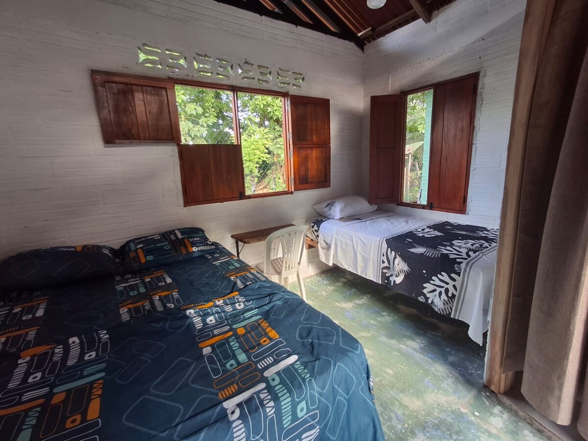 Cabañas en San Francisco, Chocó, rodeadas de selva, mar y playa. Capacidad para 8 personas, con 5 camas, cocina, refrigerador y balcón amplio. A 200 m de Río Ciego, ideal para disfrutar del agua dulce y la naturaleza. Perfecto para caminatas, avistamiento de fauna, visitas a pozas y árboles gigantes, y ver tortugas en Caná durante Semana Santa. Un refugio de tranquilidad y biodiversidad.