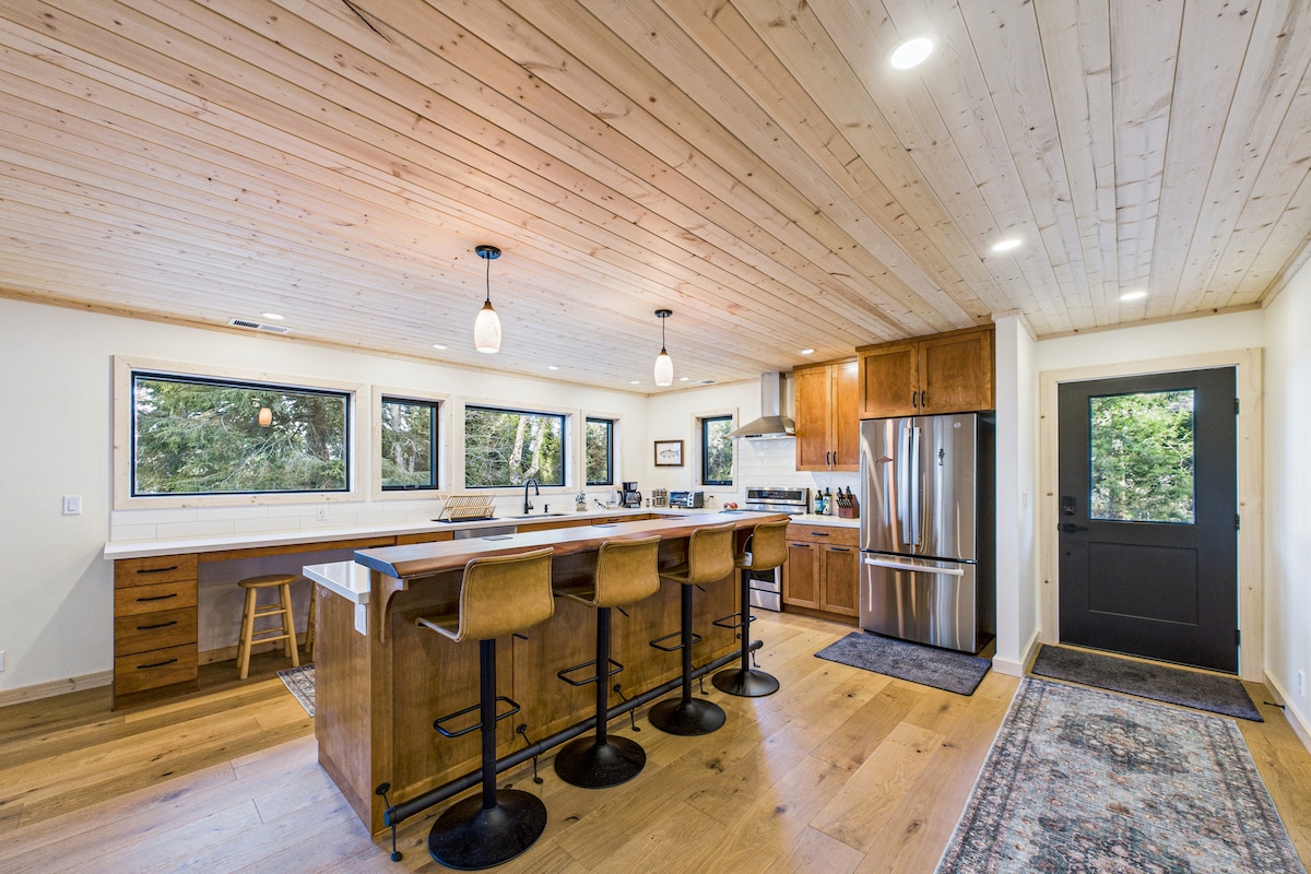 Bem-vindo ao The Wind and Tide, onde a floresta encontra o mar. Nossa casa recentemente remodelada está situada em três acres de penhasco florestal com vista para o Pacífico, ao norte da vila litorânea de Trinidad. A tranquilidade espera por você enquanto você dá um mergulho na banheira de hidromassagem e relaxa junto à fogueira, absorvendo os sons dos leões-marinhos, as vistas das baleias migratórias e o pôr do sol e a observação de estrelas em abundância. A maré, a caça às ágatas e a exploração do Parque Estadual Sue-Meg ficam a uma curta distância de carro.