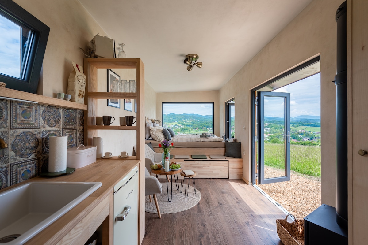Desfrute de uma estadia romântica a dois numa casa de design sobre rodas com uma bela vista para o Castelo de Lednica. Venha desfrutar de um ambiente excepcional com vistas inconfundíveis, certamente não se arrependerá. O conforto é garantido pelo mobiliário interior feito à mão e você será mimado por equipamentos acima do padrão.