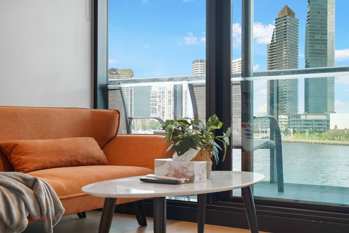 Experimente o melhor de Melbourne! Nosso lugar é bonito, aconchegante e convenientemente localizado. Assista aos remadores no rio Yarra, exercite-se em nossa academia e relaxe na piscina e no spa. Explore o caminho do Yarra, pegue o bonde gratuito para fazer compras na cidade e volte para o nosso bairro calmo. Sem TV — apenas sofás profundos para café, conversa ou um bom livro. Caminhe até restaurantes da marina ou assista a eventos no Marvel Stadium. Termine o seu dia na nossa varanda, rodeado pelas luzes da cidade.