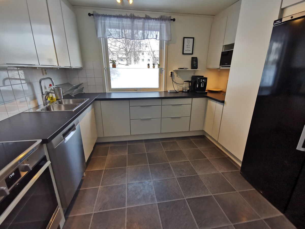 Com floresta atrás e prado ao lado, isso é o mais perto da natureza que você pode chegar e ainda estar perto de ponto de ônibus e loja de alimentos, 1 e 10 minutos a pé. Sim, você pode ver a aurora boreal, mas isso depende principalmente do tempo e da sorte de qualquer maneira. No inverno, os alces podem estar comendo das árvores do jardim, principalmente ao anoitecer ou ao amanhecer. Duas camas extras podem ser fornecidas, seis pessoas podem viver confortavelmente nesta casa grande. Esta é uma casa, não um hotel. Por favor, deixe-a como a encontrou, limpa. Por favor, leia as regras extras da casa primeiro!