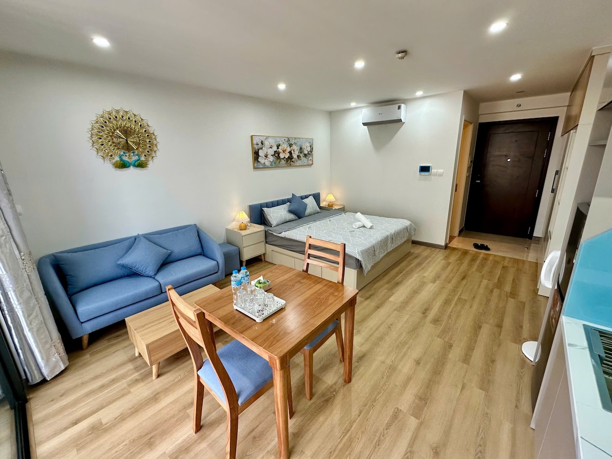 [Piscina gratuita para estadias longas a partir de 14 noites] - Querido meu amado hóspede! Meu apartamento estúdio totalmente mobiliado é projetado para clientes que planejam viajar ou fazer uma viagem de negócios em Hanói. Nosso novo apartamento está localizado em VINHOMES D'CAPITALE, rua Tran Duy Hung, Cau Giay, Hanói. - Este novo apartamento é um apartamento estúdio com 1 cama queen size, 1 banheiro privativo e sala de estar tem um sofá agradável para você relaxar com uma smart TV depois de um dia de trabalho duro, a cozinha tem um fogão, geladeira, microondas...