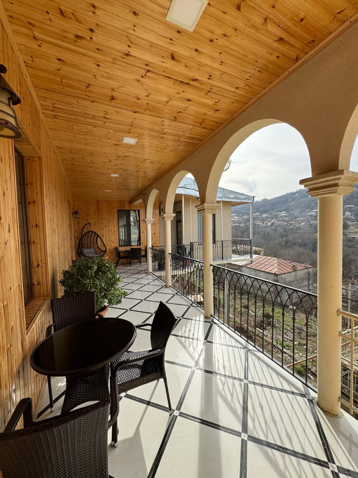 A localização fica perto do centro, com vistas deslumbrantes para as montanhas e para o vale de Alazani. Do centro, leva 5 minutos a pé para o destino em menos de um minuto. O local de aluguel é o primeiro andar da nossa casa e contém 2 apartamentos privativos, com enorme varanda compartilhada, que tem vista para um layout espaçoso e vistas deslumbrantes da paisagem circundante. Além disso, nossa atenção aos detalhes e ao mobiliário garante uma estadia confortável e luxuosa para nossos hóspedes.