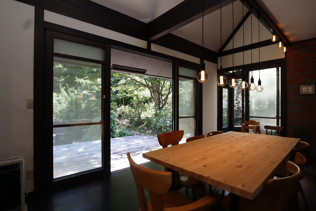 Mökki significa "casa de campo" em finlandês. Por favor, passe o seu tempo como quiser num espaço especial separado da sua rotina diária. A casa de hóspedes Mökki está localizada na cidade de Shinano, que é abençoada com florestas, lagos e neve no norte da província de Nagano. Nas proximidades existem pontos turísticos ricos em natureza, como Kurohime Kogen, Lago Nojiri e Togakushi. O edifício dos primeiros tempos do assentamento foi elegantemente renovado usando muitos materiais naturais, como cedro virgem, cipreste e gesso.Também nos focámos no interior e nos utensílios de cozinha para que possa desfrutar de "viver". No inverno, quando está completamente coberto de neve, pode desfrutar do cenário prateado só para si.Pode seguir os rastos dos animais com raquetes de neve e fazer um piquenique na neve, ou desfrutar de uma fogueira ou churrasco no miradouro junto ao riacho, mesmo no inverno. Há também 7 estâncias de esqui a 30 minutos de carro.É também uma ótima base para esquiar e praticar snowboard nesta região, famosa pela sua neve em pó. Também temos um serviço de bolos de celebração para os hóspedes que celebram aniversários e datas especiais.Por favor consulte-me com antecedência.