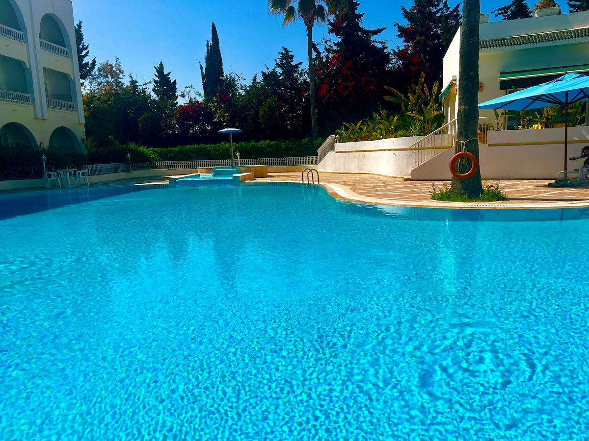 Residence Royal- na área turística de Hammamet perto de todas as comodidades apartamentos para alugar para turistas, de curto ou longo prazo, bem equipados com TV, ar condicionado, kitchenette, serviço de concierge, 1 quarto + sala de estar para 2 a 4 pessoas ideal para casais ou famílias 2 quartos + sala de estar para 6 pessoas disponíveis noutro anúncio Divirta-se com toda a família neste alojamento chique.