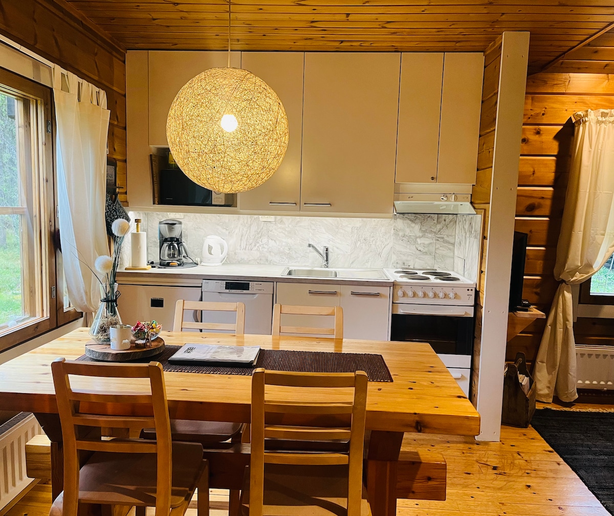 Você pode relaxar neste destino único. Nesta casa de campo, há uma banheira de hidromassagem onde você pode ver o céu cheio de estrelas e luzes do norte. Dentro da casa de campo, há sauna finlandesa original. Parque nacional de Pallas-Ylläs cerca de 1 hora de carro e resort de esqui Levi a 20 minutos de carro. Perto desta casa de campo, há muitos caminhos naturais e estradas de snowmobile. Na costa da casa de campo, há uma verdadeira cabana da Lapônia, onde você pode desfrutar de fogueira. Passeios de Husky e renas a 15 minutos de carro Aldeia dos elfos a 15 minutos de carro