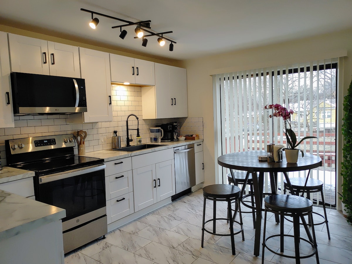 🏠2 quartos, 2 camas, 1 sofá-cama. Capacidade 🛋 máxima: 4 adultos e 2 crianças. 2 Smart TVs, Roku, canais locais 1 banheira/chuveiro ✅ perto de autoestradas ✅ Ikea-2min, Plaza-15, Westport-10, airport-30.Restaurants/stores /lugares de entretenimento ✅ Limpo, adequado para famílias com crianças. Oferecemos uma cadeira de bebé e um parque de brincar. Alojamento de✅ um piso, sem escadas ✅ Garagem para um carro médio/compacto, estacionamento na rua disponível. Parques, áreas de jogos e zonas de piquenique fechados ❌Os animais de estimação não podem subir para os móveis e as camas