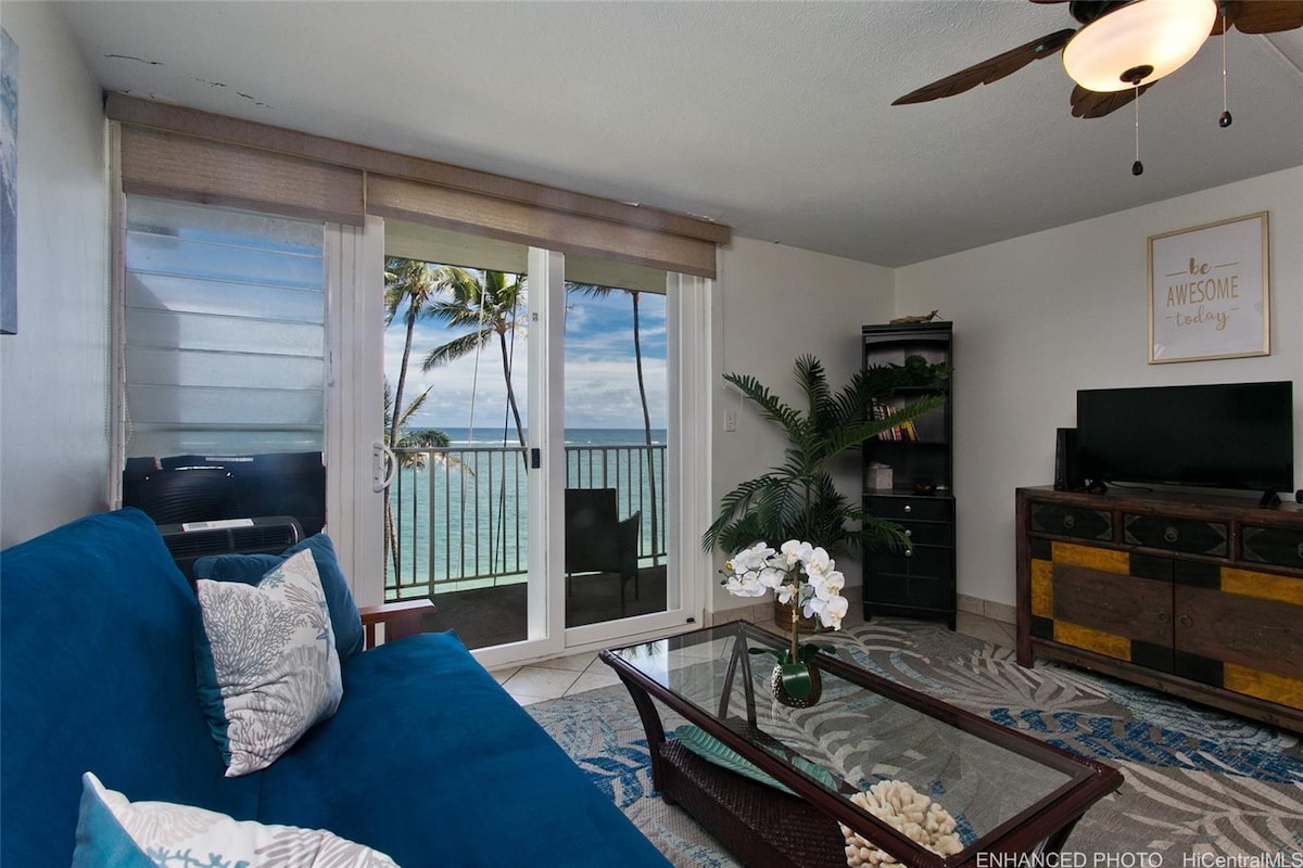 Aloha & Welcome to Punaluu! Enjoy a memorable visit when you stay in this unique sandy beachfront cottage! Important! Please keep reading for information about the renovations going on at the property. Incredible view of the ocean & you will love amazing sunrises right out your window! This special condo has a great little kitchen & new king bed. Perfect for swimming, snorkeling, paddleboarding & just relaxing on the beach! BBQ area, pool, gym, security & FREE parking!