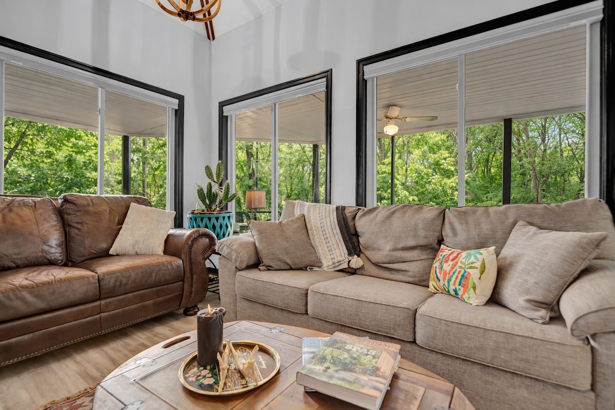 Beautiful luxe townhouse for up to 8 guests, with 2 bedrooms, 2.5 baths, a full kitchen, office, loft, and a deck with a grill overlooking parklike shared grounds. Bright interiors, skylights, mountain views, and a marble master shower will take your breath away. Steps from Shawnee Mountain and a short drive to Shawnee Inn & Golf, Bushkill Falls, the Delaware Water Gap, outlets, and dining. Includes breakfast, snacks, and quality body care—ideal for families, couples, or groups. Decor available.