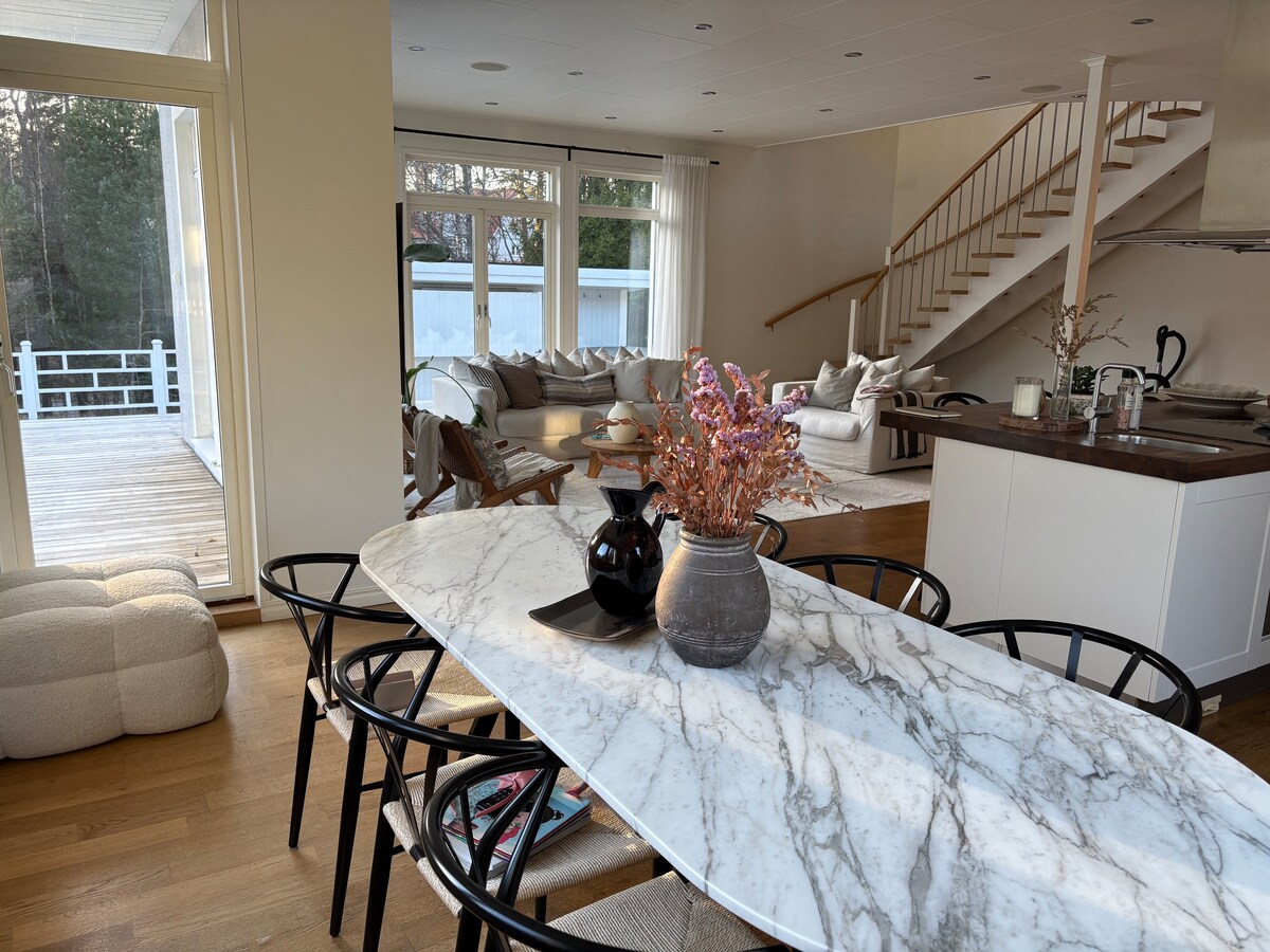 Alojamento perfeito para famílias que desejam ficar com comodidades como piscina, pátio, sauna, sala de cinema e com 4 quartos. A casa está centralmente localizada em Trollbäcken, Tyresö, com 50 metros da paragem de autocarro com autocarros diretos para a cidade e para Gullmarsplan. A uma curta distância a pé de mercearias e restaurantes. A casa é uma casa de um único andar com cave mobilada e um total de 200 m ². Deck exterior de cerca de 100 m ² virado a sudoeste. Grupo lounge, área de jantar, churrasqueira e espreguiçadeiras e também guarda-sol. Garagem e espaço para 2 carros na garagem.