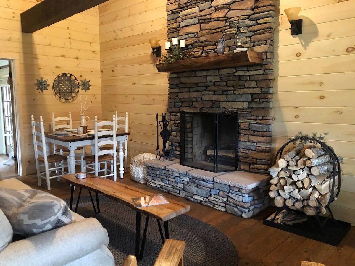 The Salisbury Rustic Log Home blends classic log-cabin charm with modern comfort in a peaceful, secluded setting—perfect for guests seeking privacy and relaxation. Unwind on the covered front porch, soak in the covered hot tub, or gather around the cozy fire pit on cool evenings. Lit sidewalks and serene surroundings create an inviting atmosphere day and night. Whether you’re planning a romantic escape or a quiet nature retreat, this rustic getaway offers it all in one memorable stay.