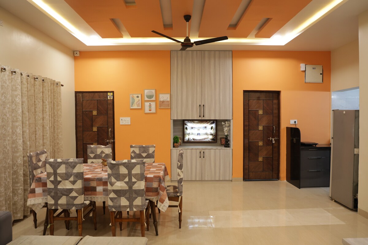 Luxury 2BHK Homestay in Ujjain 🌟 Prime Location: Minutes from Mahakaleshwar Temple, Harsiddhi Temple, and Shipra River. 🛋️ Elegant Interiors: Traditional charm meets modern luxury in spacious living areas. 🛏️ Two Luxurious Bedrooms: King-size beds with air conditioning, Wi-Fi, and premium linens. 🍳 Fully Equipped Kitchen: Prepare your meals in style. 🌿 Relaxing Garden: Perfect for tea, meditation, and unwinding. 📍 Personalised Experience: Local tips and recommendations available. 🅿️Car