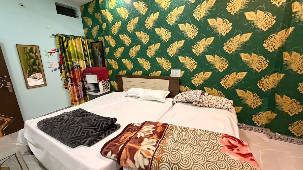 Desfrute de uma experiência elegante e familiar neste lugar com localização central. O espaço com design duplo possui 2 camas king size, perfeitas para amigos, irmãos ou viajantes solitários. Principais características: • Localização privilegiada: com localização central, com fácil acesso ao Templo Shri Mahakal e a outros templos antigos. • Estadia confortável: quarto bem ventilado com comodidades essenciais, mantenha-se relaxante e sem complicações. • Conveniência: há transportes públicos, estacionamento e principais atrações nas proximidades.