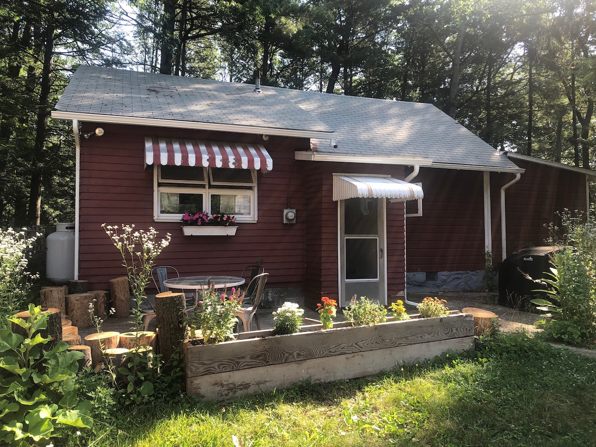 Uma pequena casa de campo feita à medida, localizada numa estrada arborizada privada com apenas algumas casas. O estilo de design é rústico de quinta com detalhes originais. É privado, totalmente equipado e localizado no centro. A frente da casa de campo tem uma varanda ensolarada equipada com espreguiçadeiras e churrasqueira. A parte de trás da casa de campo tem um alpendre com tela, uma enorme banheira exterior e sala de estar. Está de frente para um belo lago, uma fogueira e bosques profundos e natureza vibrante.
