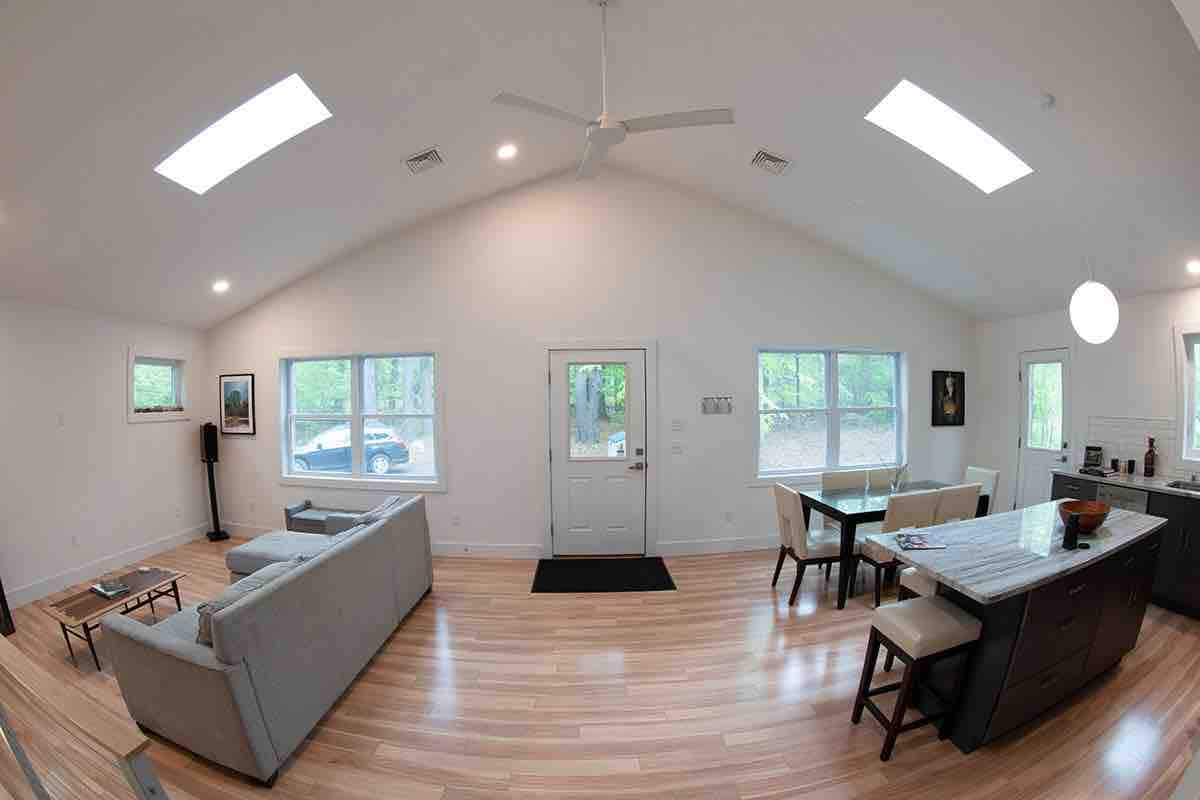 Apresentada na Vogue, Curbed e Remodelista, a Cook House é uma casa de campo moderna totalmente renovada nas Catskills com vibrações minimalistas aconchegantes e equipamento de cozinha concebido para inspirar o seu chef interior. Desfrute de cozinhar enquanto os discos giram nos Sonos. Coma ao ar livre na varanda e, em seguida, vá para a banheira de hidromassagem. Ou beba o seu espetáculo favorito no ecrã de projeção ao pé da cama. Ótimo para casais ou indivíduos que procuram relaxar e desfrutar da natureza. Hospedado pelo The Reset Club, membro da 1% for the Planet.