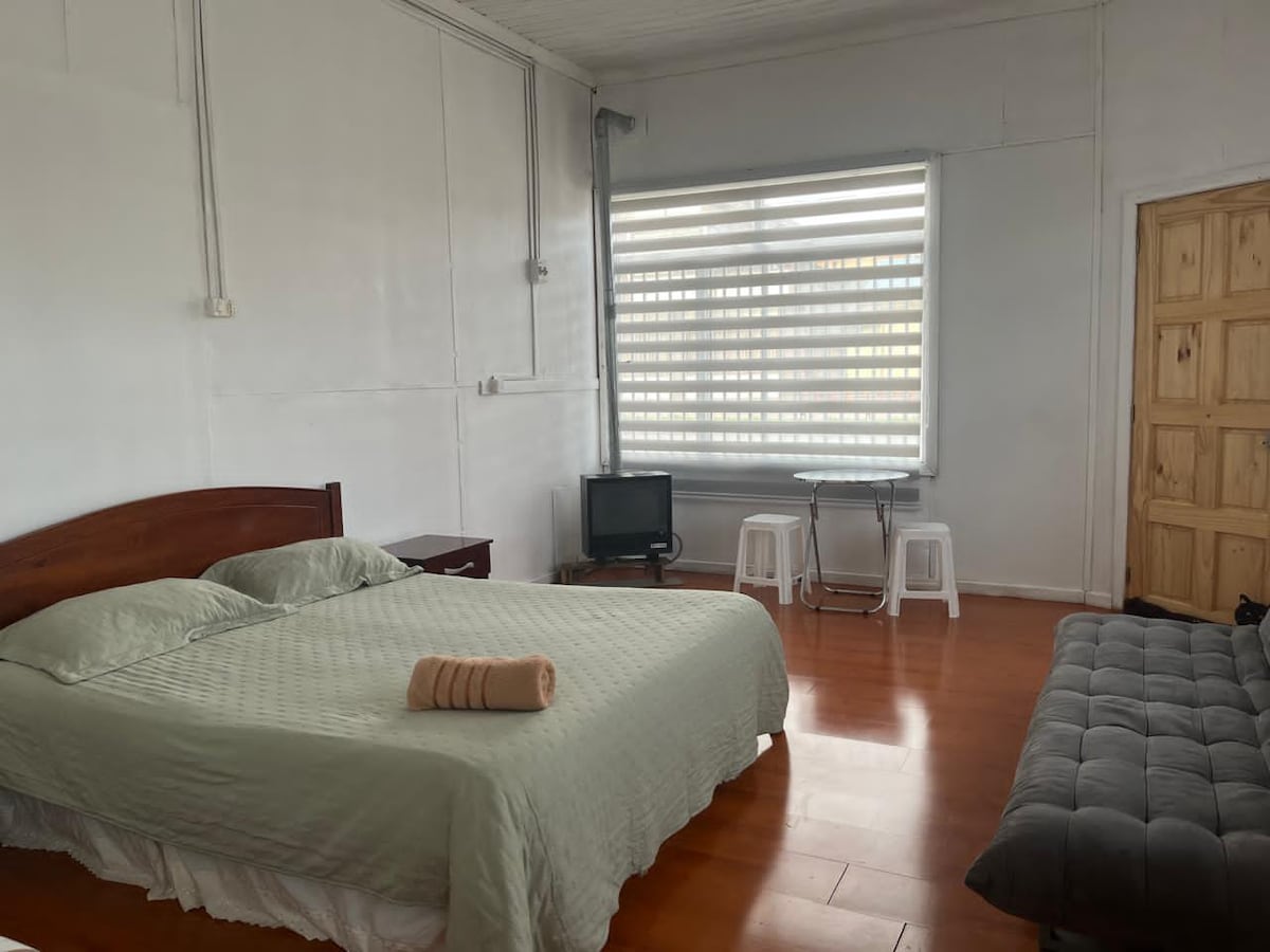 Disfruta de la sencillez de este alojamiento tranquilo y céntrico. Atención 24 hrs para los huéspedes, ante cualquier solicitud que requieran. Cabaña full equipada a 2 cuadras del centro de la ciudad, lugar tranquilo y muy cómodo. Check -in 14:00 hrs. Check-out 11:00 hrs
