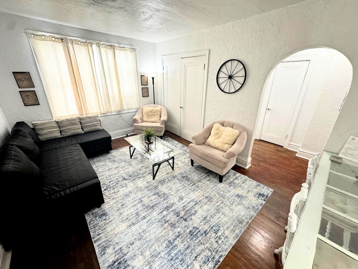 Casa de hóspedes recém-reformada e acolhedora. Tudo o que você precisa está localizado aqui no histórico bairro de Bevo Mill. No coração do sul de St. Louis, você está a poucos passos de empresas locais, incluindo o pitoresco e histórico Das Bevo. Entre em um oásis de estilo vintage, com grandes janelas com muita luz natural, tetos altos abobadados, cama queen confortável, geladeira exclusiva, bar de café da manhã, banheiro de tamanho considerável com um grande chuveiro. Fique do lado de fora na mesa de piquenique sob lindas luzes de cordão.