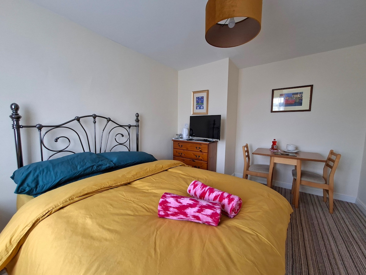 The annex, detached from the main house, is set within a beautiful landscaped garden. The spacious bedroom has a double bed and a Smart TV (you will have access to Sky, Netflix, Apple+, Paramount) the bathroom has a walk-in shower. The separate living area has a dining table, sofa and small fridge. Tea and coffee making facilities, cutlery and crockery (for takeaways etc.) are provided. Parking is at the front or side of the house. There is access to strong WiFI . Pets are welcome.
