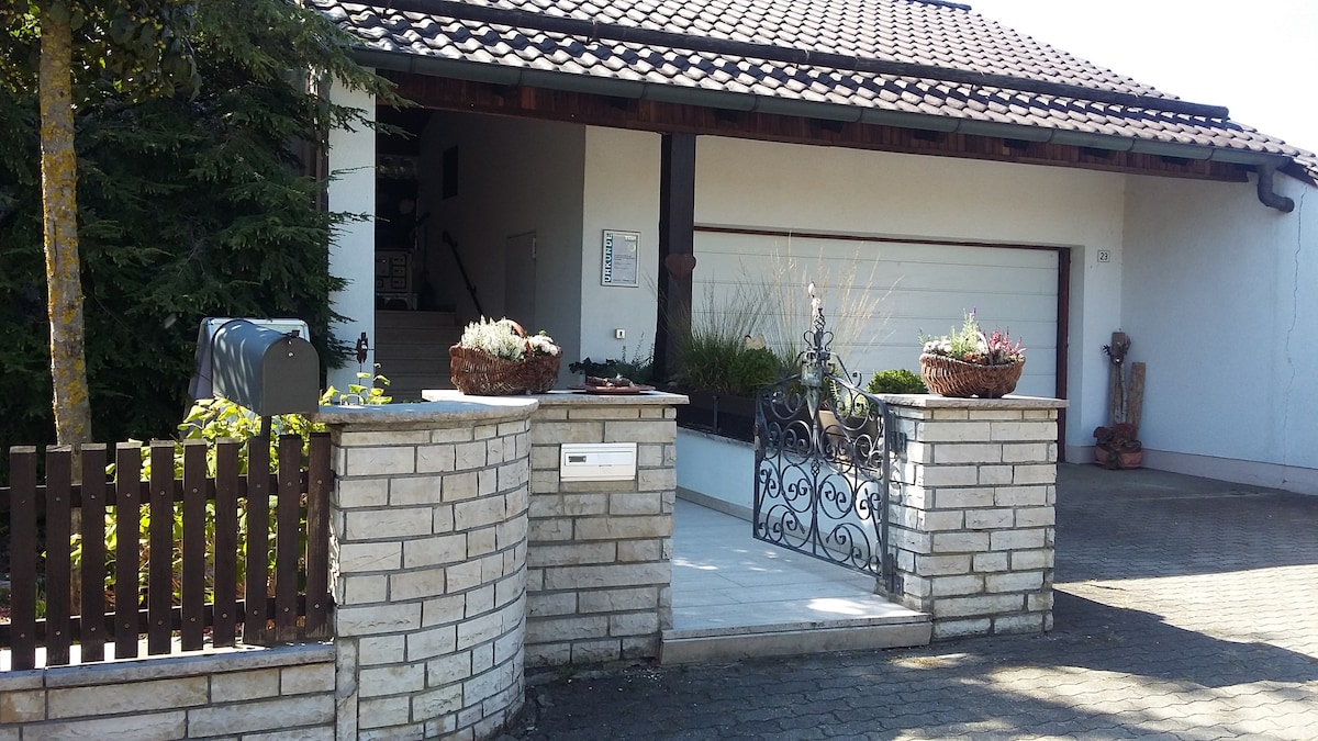 A nossa casa irá encantá-lo com uma atmosfera familiar e a sua localização diretamente adjacente a um pequeno riacho. Você encontra o seu quarto duplo com casa de banho privativa no primeiro andar de frente para o nosso jardim. As pessoas que adoram animais farão amigos aqui. A poucos passos da nossa casa começam algumas trilhas para caminhadas e ciclismo. Por favor, entre em contacto comigo para obter dicas de viagens e experiências. Será sempre um prazer poder ajudar. É claro que também pode simplesmente relaxar no nosso grande jardim.