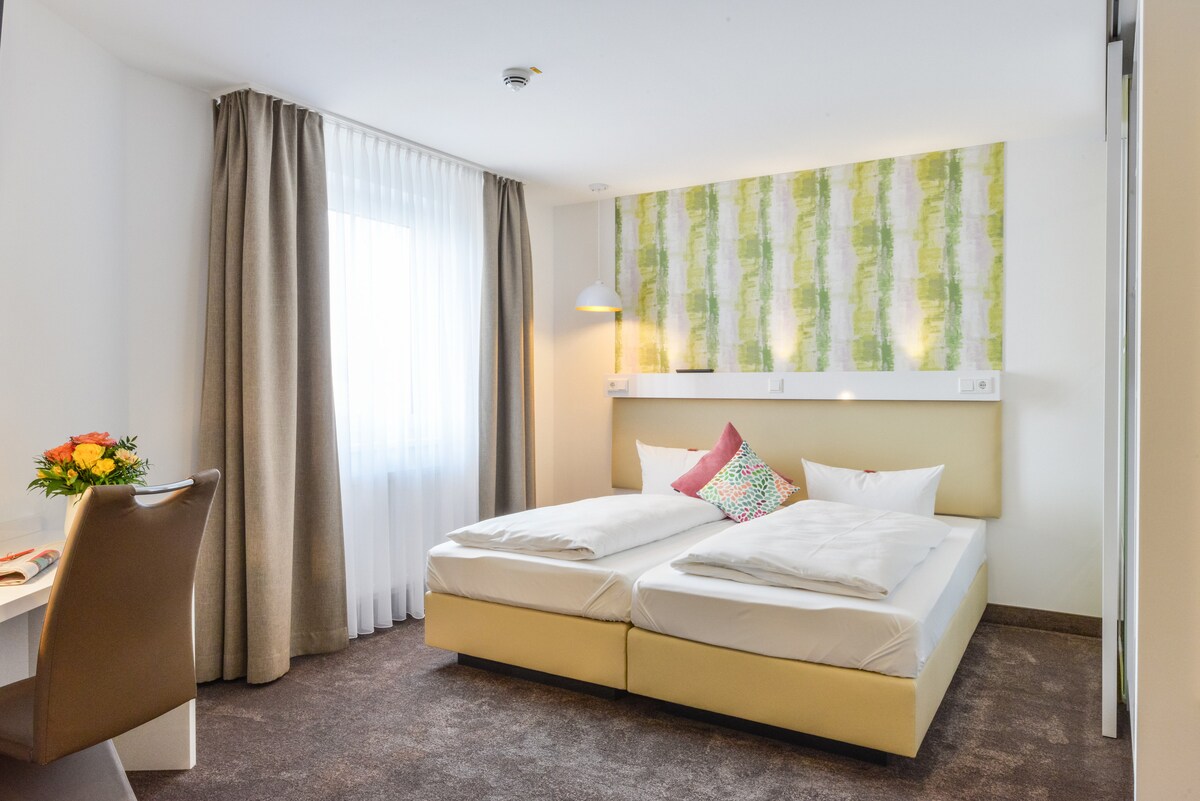 Com uma localização central entre Nuremberga e Munique, este moderno apartamento é um excelente ponto de contacto para uma escala, mas também um ótimo ponto de partida para várias viagens de um dia. Experimente a natureza maravilhosa da Baviera – por exemplo, na vizinha Altmühltal – ou desfrute de um extenso passeio de compras no outlet "Ingolstadt Village". Este belo apartamento faz parte do Hotel Günter em Lenting na auto-estrada A9.
