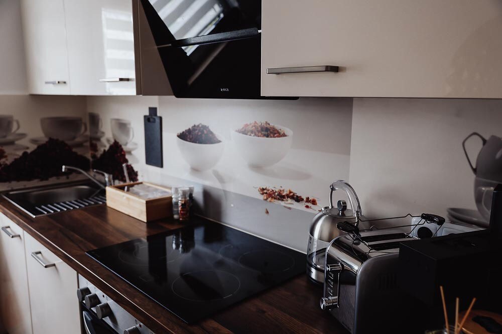 O espaçoso apartamento (60m²) para 2 pessoas é composto por uma sala de estar com sofá, poltrona, mesa e unidade de parede incl. TV de 65 polegadas, um quarto com cama de casal e guarda-roupa, uma cozinha com fogão elétrico de cerâmica, geladeira, cafeteira, micro-ondas, chaleira, torradeira, um banheiro com chuveiro, banheira, pia, máquina de lavar, um banheiro separado e um espaçoso depósito. Inclui roupa de cama, toalhas, água e luz, limpeza final