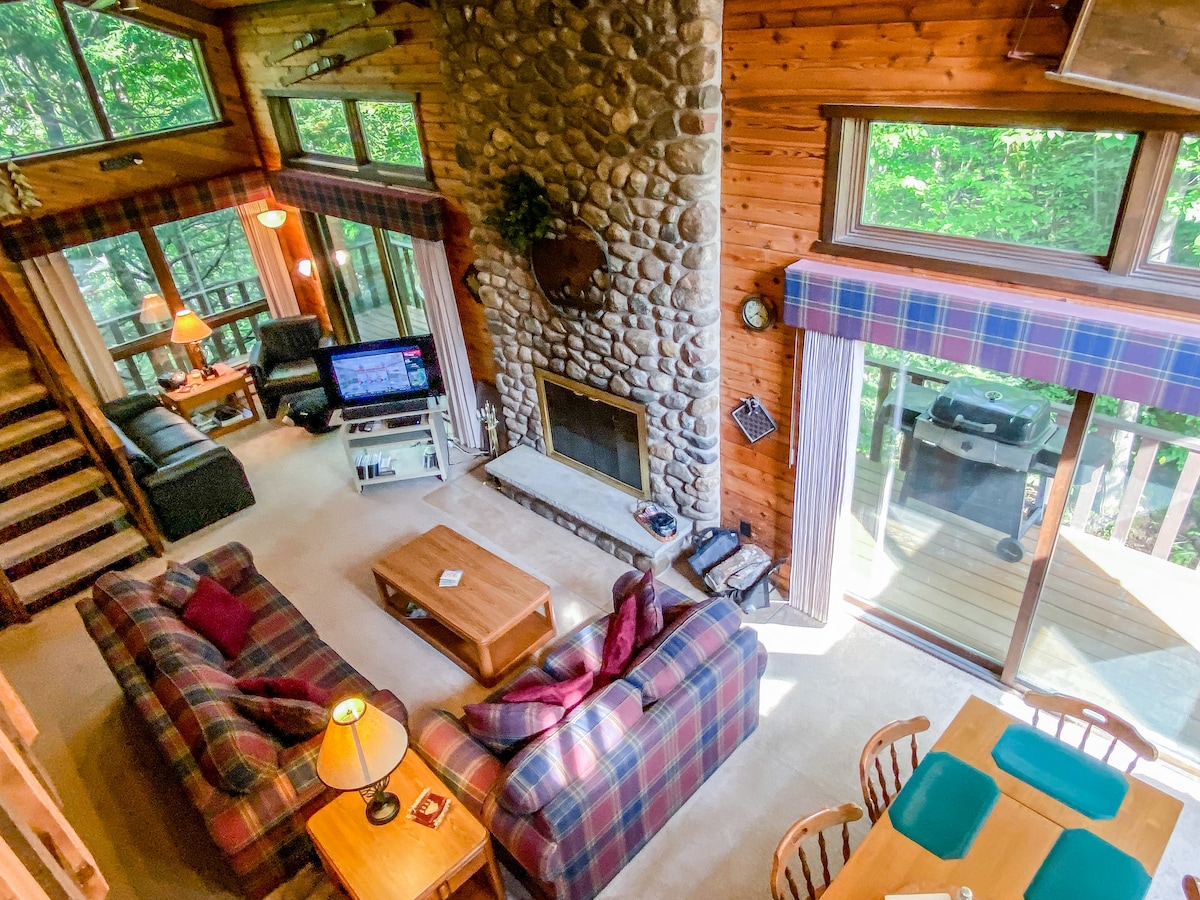 Esta estrutura em A foi construída com caráter, seu charme mais antigo certamente ajudará você a descansar e relaxar. No entanto, se você quiser um espaço renovado, esta cabana não é para você. É limpo, aconchegante, o charme do norte é perfeito para o hóspede que quer fugir e passar algum tempo perto da natureza. a cabana fica a poucos minutos de motos de neve, caminhadas, golfe, resorts de esqui e do centro de Gaylord. Mais informações sobre atividades na Pasta de Boas-Vindas. As cabanas grandes em forma de U são perfeitas para transportar motos de neve e reboques!