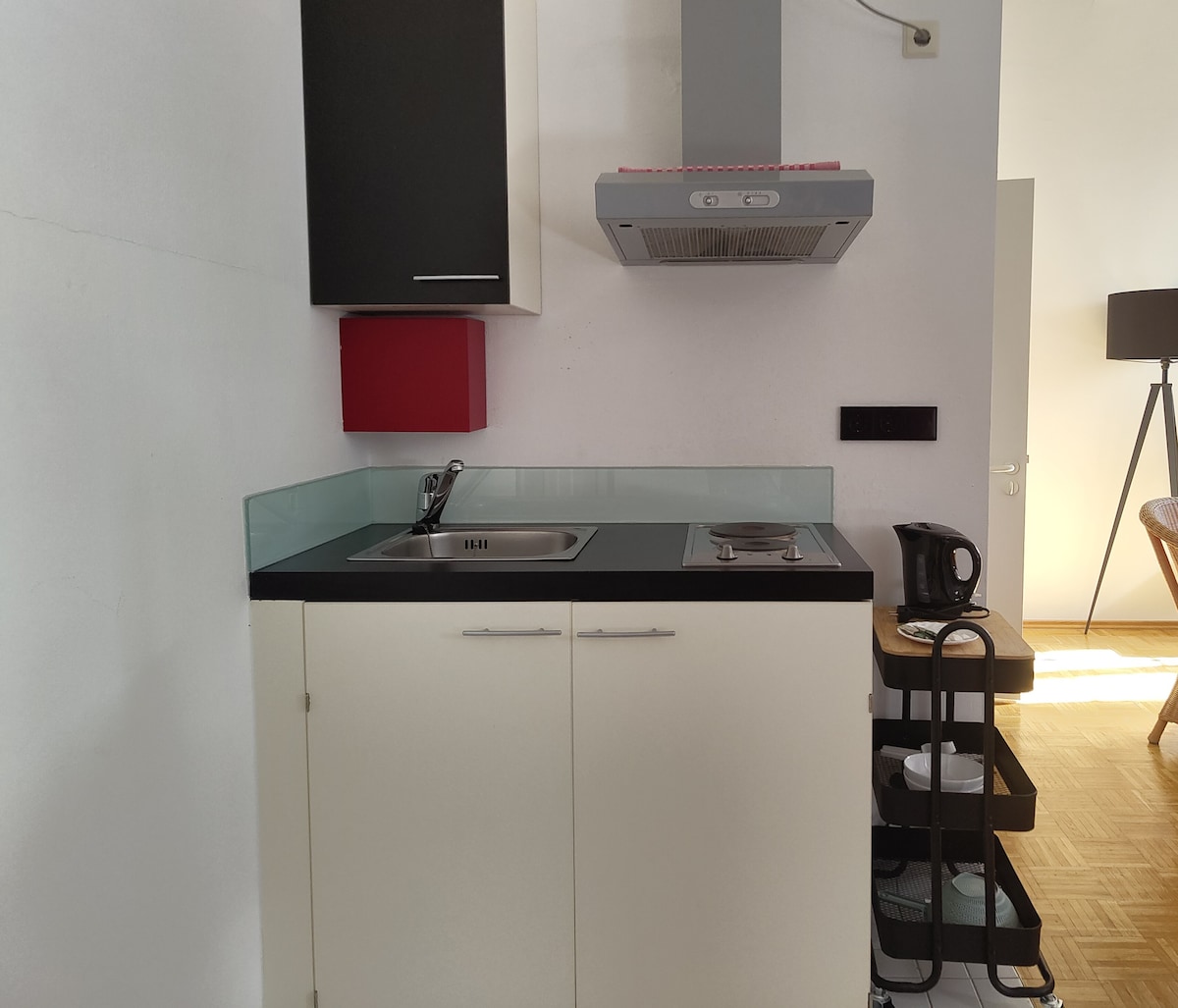 Bem-vindo ao nosso encantador estúdio, ideal para até 3 pessoas. Localizado num antigo hotel, o apartamento oferece uma cama confortável, um sofá-cama grande e uma mesa de jantar. A kitchenette está equipada com frigorífico e placas de aquecimento. A casa de banho tem sanita e chuveiro. Está disponível um estacionamento privado. A localização é excelente: apenas 10 minutos a pé do Reno e 20 minutos do centro da cidade. Estamos ansiosos pela sua visita.