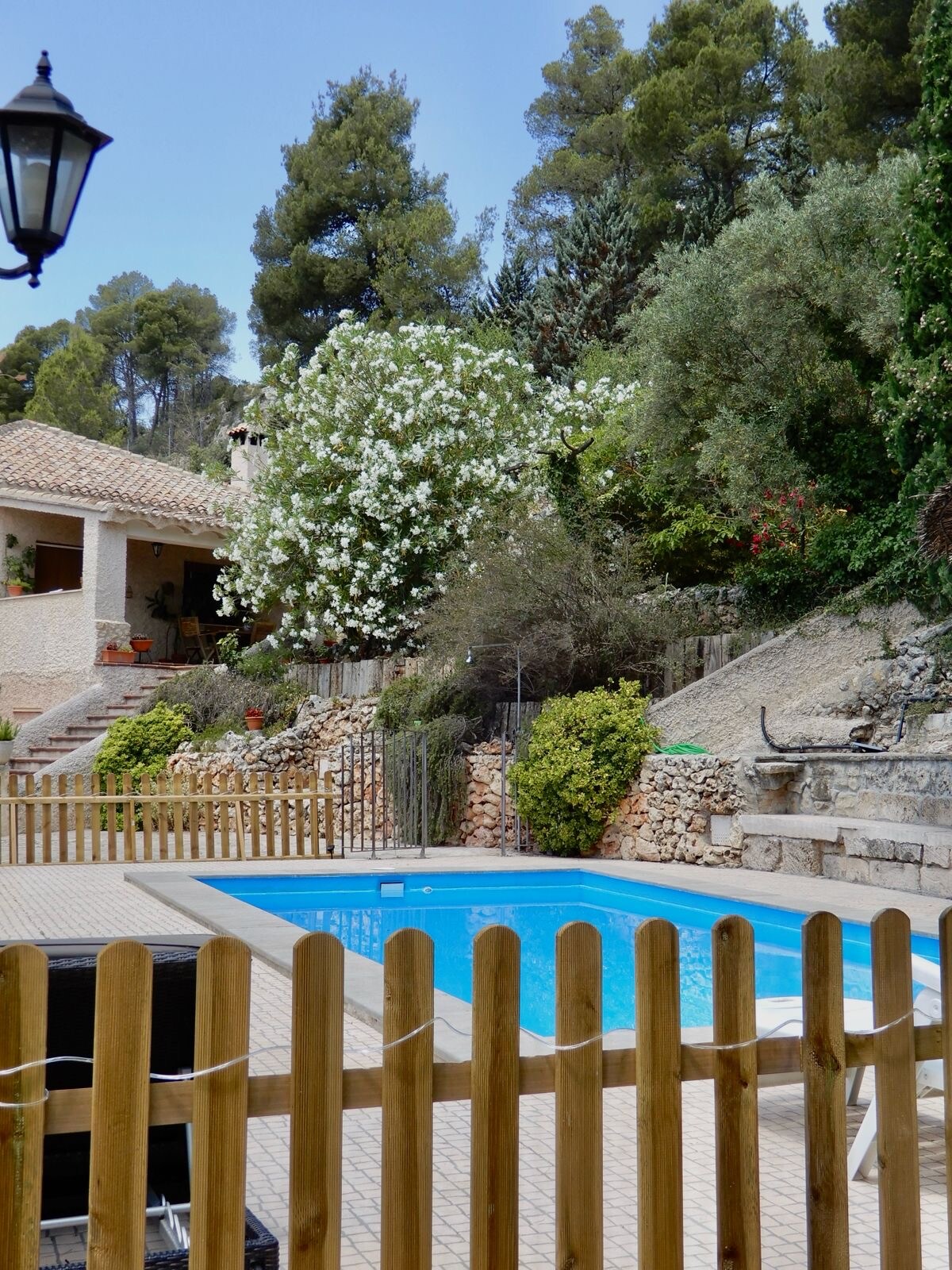 "The"The Gem" é exatamente isso!Chalé "The Gem" com piscina e vista deslumbrante para a montanha É um chalé de madeira de 3 quartos construído com propósito, com piscina privativa e amplo espaço de jardim externo, situado em um vale verde tranquilo com vistas deslumbrantes para as montanhas e pomares de frutas, mas perto das melhores praias de bandeira azul da Espanha. É o retiro perfeito para umas férias de fuga. Todas as comodidades modernas estão a apenas três minutos de carro na bonita e tradicional cidade espanhola de Villalonga.
