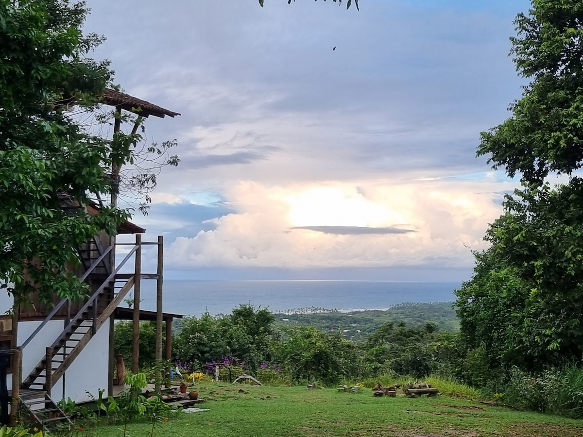 Uma casa cheia de arte e aberta para o mirante, com torre e ampla vista para o mar e as florestas do Sul da Bahia. Uma casa que lhe oferece arte e natureza com muito conforto e tranquilidade, em Serra Grande. No meio de um refúgio rural de 25 hectares, há 2 km da vila e 4 km do Parque do Conduru, este é o lugar ideal para leitura, prática de esportes, contemplação da natureza e cozinhar. Exclusivo e com segurança. Temos uma cozinha completa e amplo deck para refeições diante do mirante.
