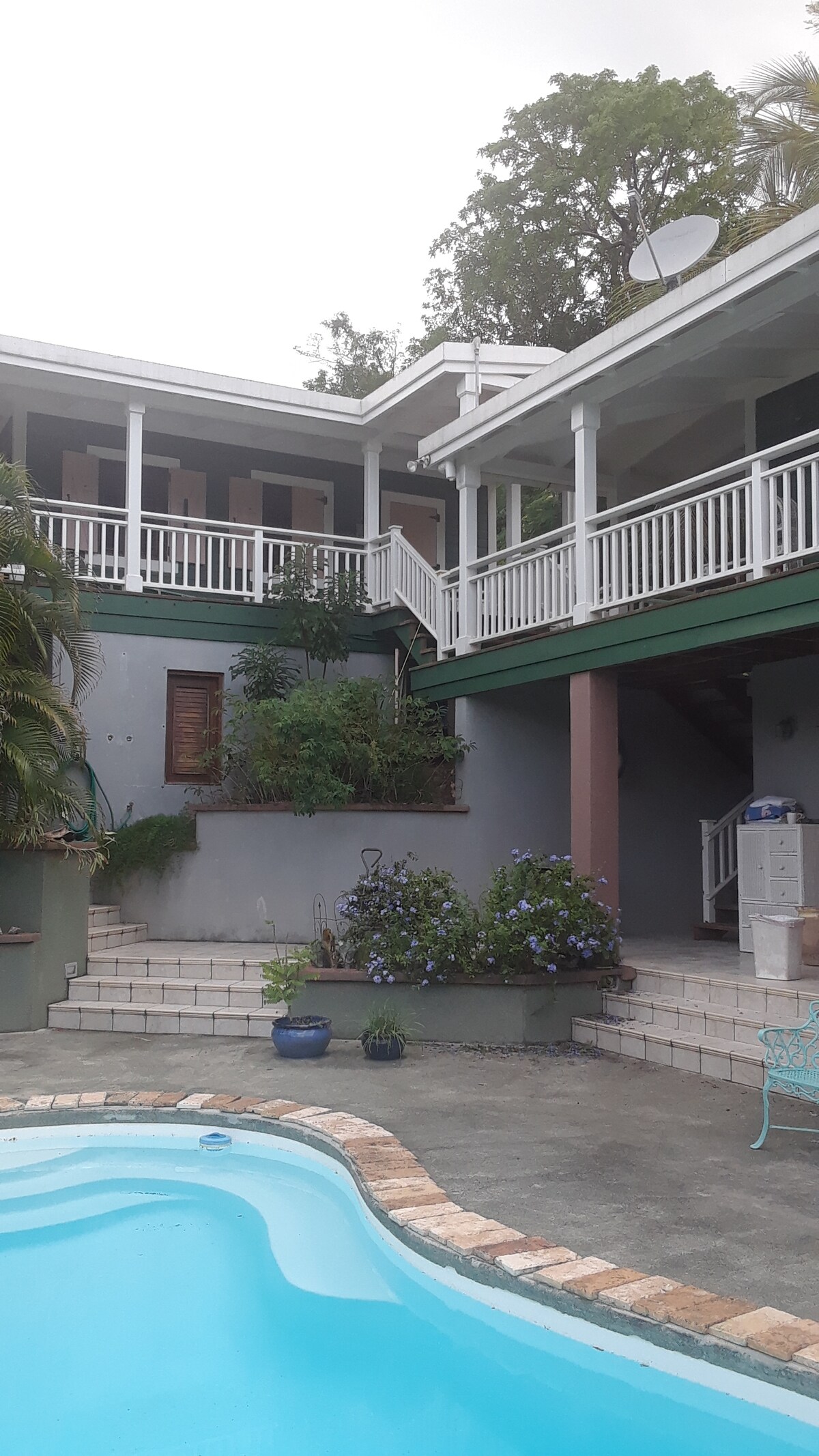 Desfrute de uma casa de campo nova e elegante com uma vista incrível! Centralmente localizado com ar condicionado, Wi-Fi, piscina e gerador. Fica a menos de 8 minutos da praia, a 2 minutos das principais mercearias, a 12 minutos de restaurantes e do centro de Christiansted. Há uma entrada privada e estacionamento. Para alguém novo na ilha, esta é uma excelente localização para chegar aos diferentes locais e necessidades. A casa de campo fica num bairro tranquilo com muito espaço ao ar livre e piscina novinha em folha com vista para a costa sul.
