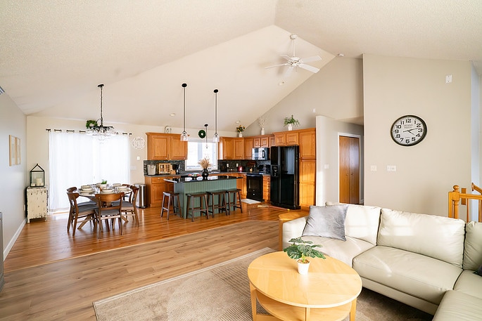 Relax in a quiet family neighborhood surrounded by a unique garden and large backyard. The great room was designed for cooking and sharing meals with family and friends. Spill onto the front porch to enjoy the views of the bluffs and watch people stroll and bike past. Close to hiking and biking trails of Bluffside Park and St. Mary's University, and just a 15 minute scenic bike ride to the center of town.