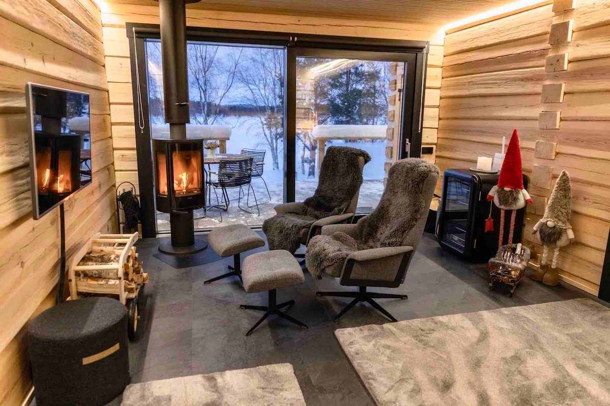 A Villa Lapin Kulta é uma elegante e nova villa de madeira de 100 metros quadrados bem equipada na margem do Lago Inari, a menos de 30 minutos de carro do Aeroporto de Ivalo. A villa de madeira está equipada com dois quartos, uma sala de lareira, uma cozinha bem equipada, uma sala de estar, uma casa de banho com chuveiro, uma sauna de madeira e uma banheira de hidromassagem ao ar livre. Desfrute de uma vista deslumbrante do Lago Inari e de uma localização tranquila no meio da natureza.